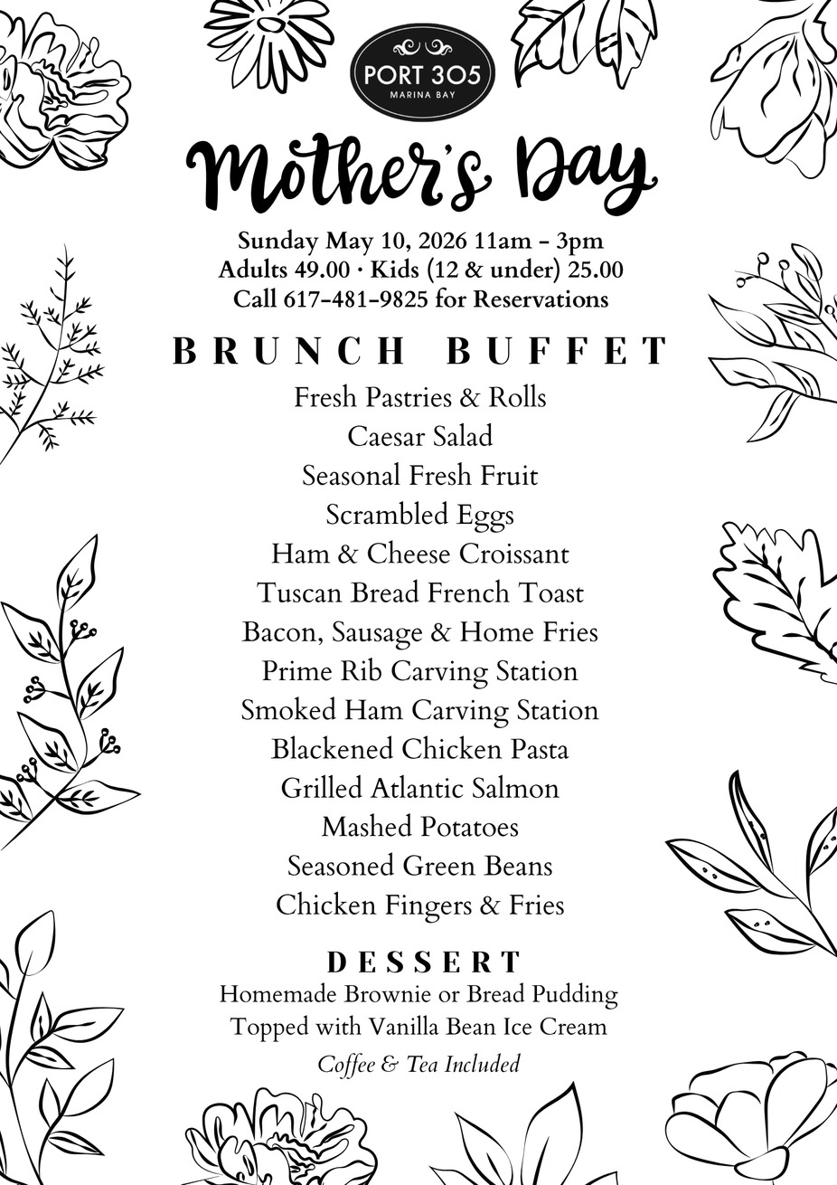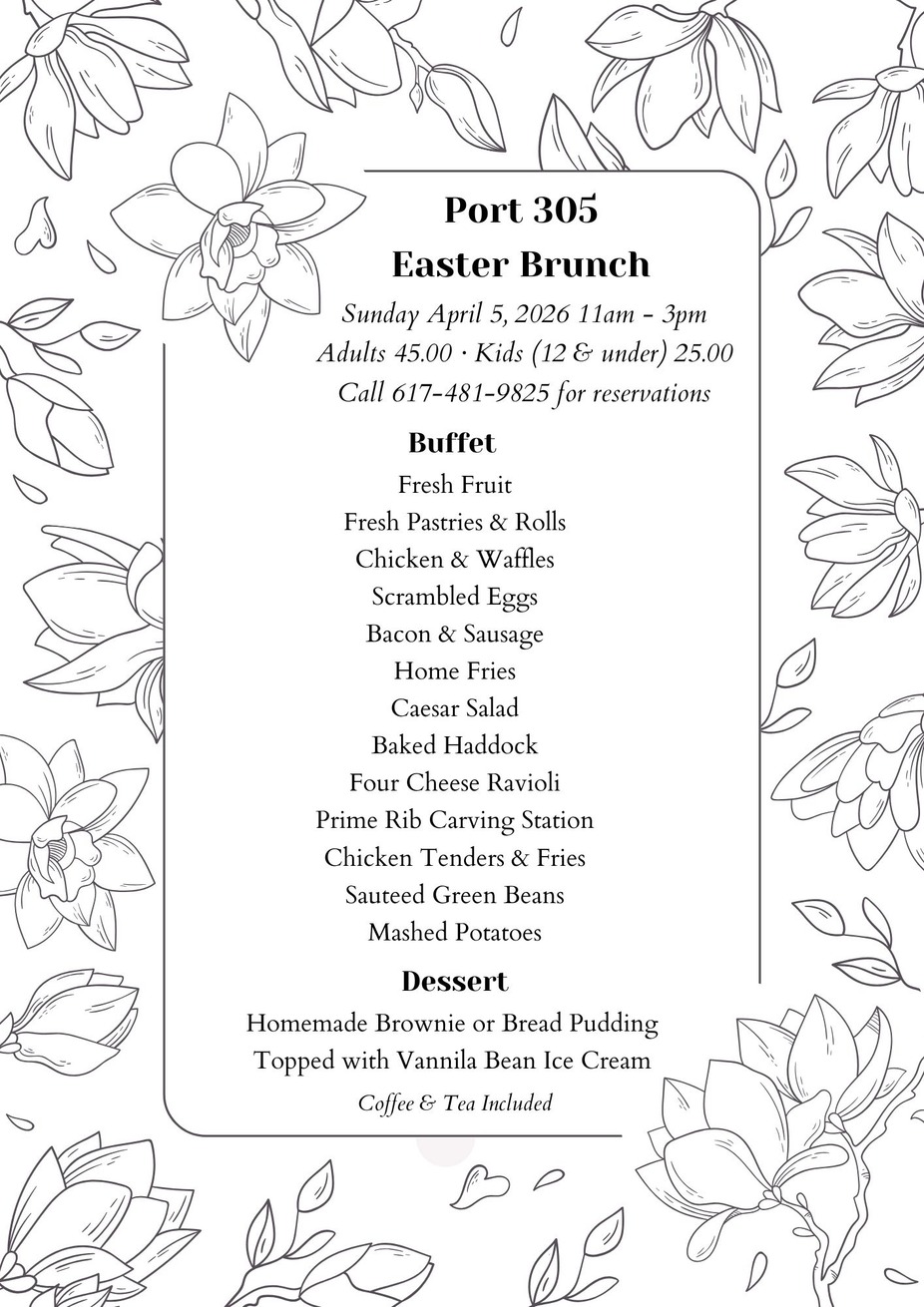 Port 305 has a lot to offer for your next special occasion. Our 2nd floor is dedicated to private events and boasts amazing views of Marina Bay and the Boston skyline, a private bar, audio and video capabilities, a fireplace, cathedral ceilings, and tasteful decor. We have a variety of possible layouts using cocktail tables, dinner tables, or a combination that will help accommodate your party's needs.