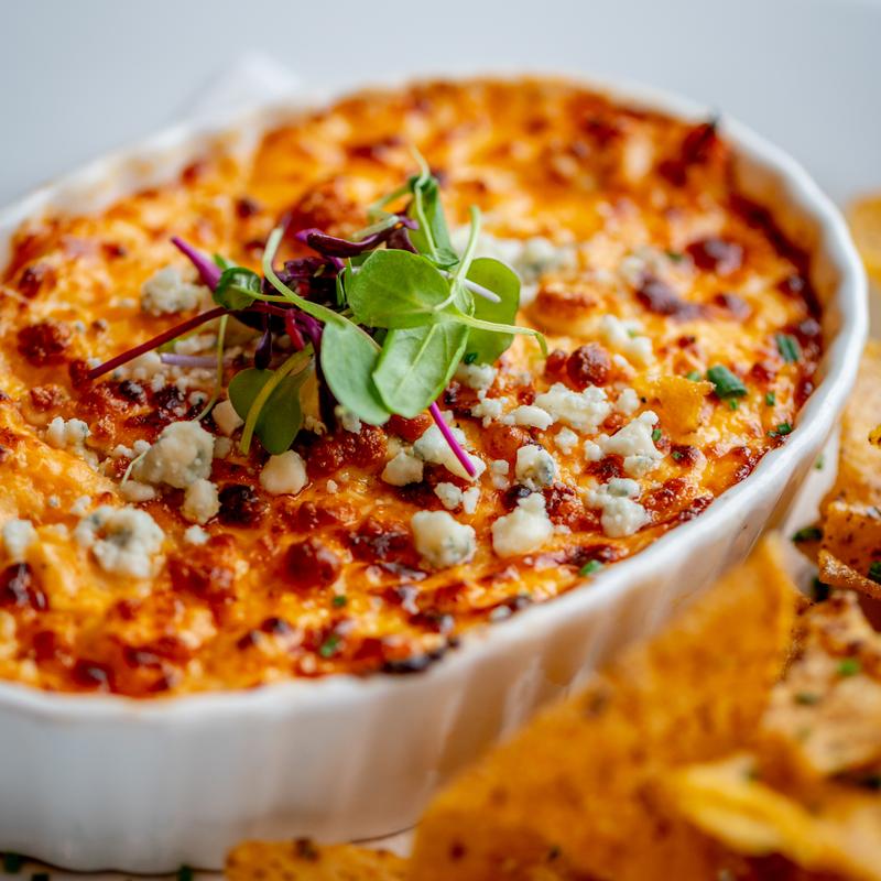 Buffalo chicken, blue cheese crumbles, tortilla chips